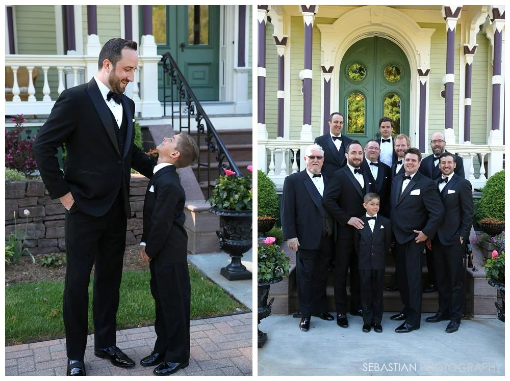 Kim and her bridesmaids got ready on the top level - where the three windows look out to the the beautiful gardens in the front yard. Nick and the boys hung out on the front porch while they waited. Kim and Nick decided to do a "first-look" where everyone anxiously watched as the bride and groom first saw each other. Nick immediately grabbed Kim into his arms as everyone celebrated with teary eyes - it was quite a beautiful sight.
